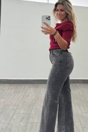 Pantalon wide leg. tachuelas