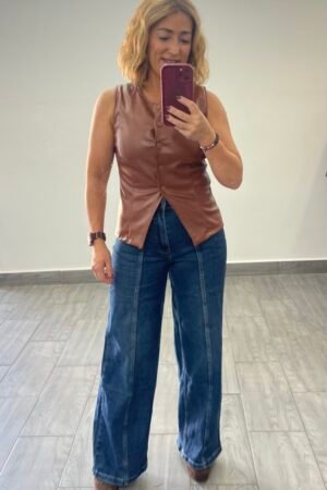 Pantalon wide leg pespunte delantero