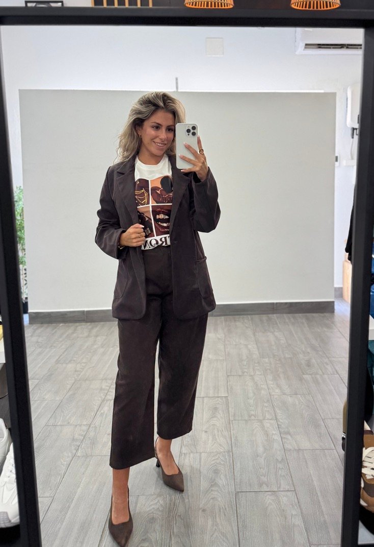 Blazer tejido micropana muy fino y agradable. No tiene forro ni hombreras. Falso bolsillo en forma de tapetas.