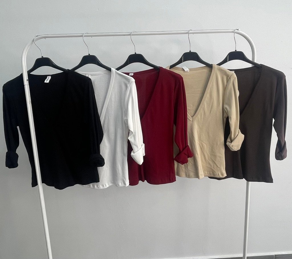 Camiseta manga larga algodon escote pico inspiracion Zara