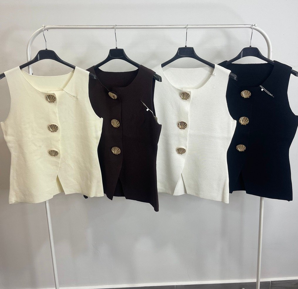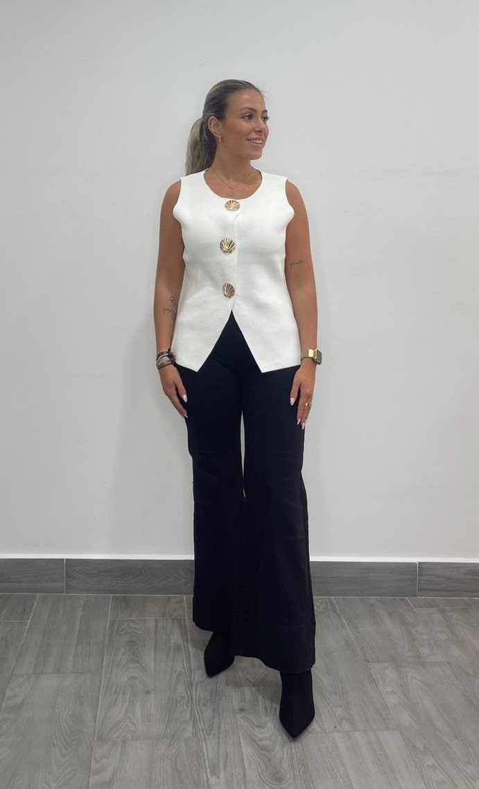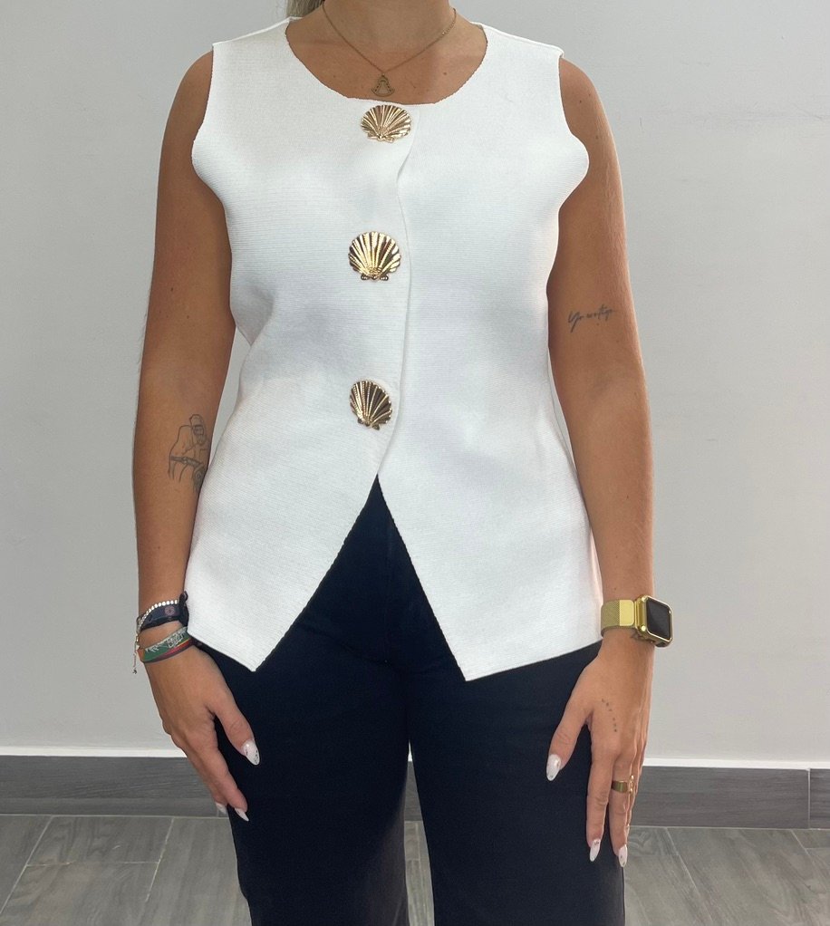 chalequillo sin mangas de punto de hilo con botones en forma de cochas