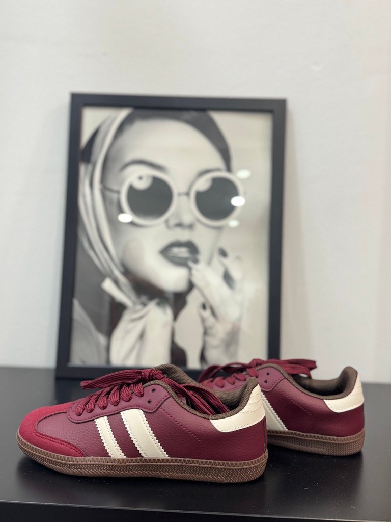 Deportivas inspiracion Adidas Samba burdeos serraje y cuero
