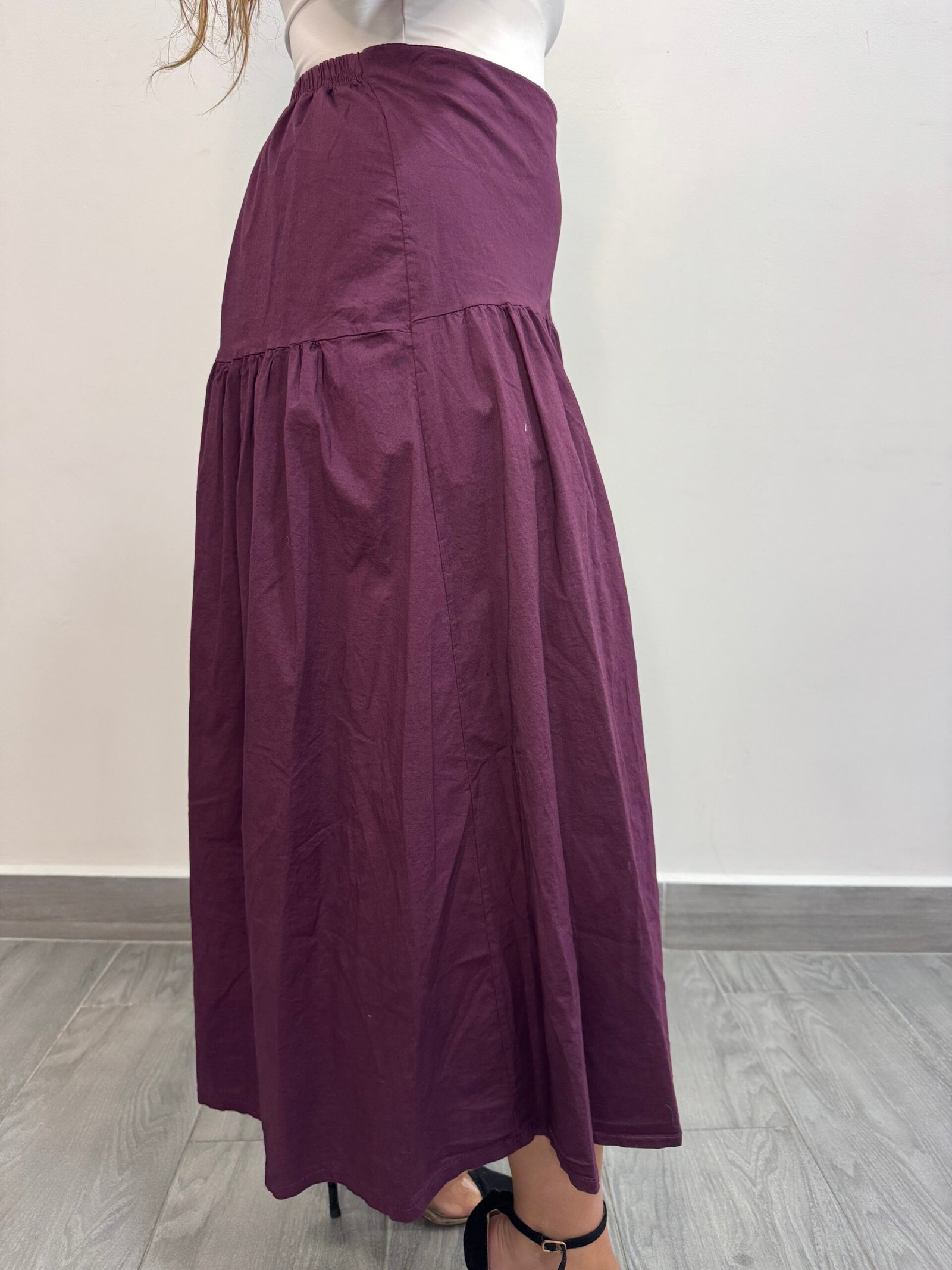 Falda con parte detras cintura elastica con efecto mas corto delante