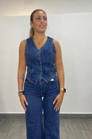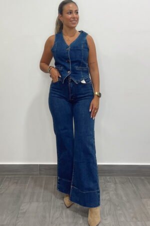 Pantalon tejano elastico con flores bordadas