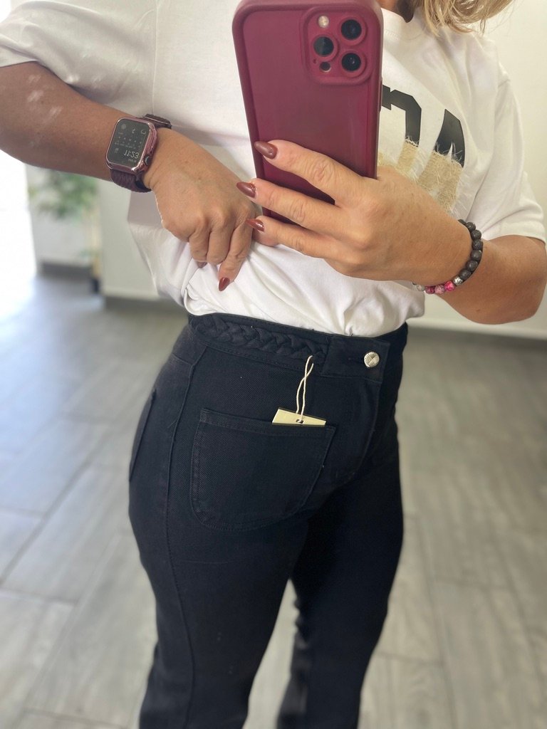 Jeans Tejano Cintura Trenza Negro