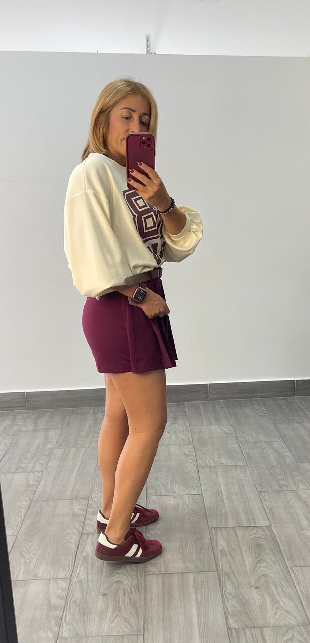 Mini falda/short en tejido punto roma con cinturon incluido