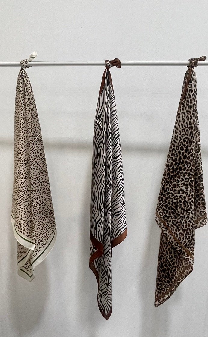 Pañuelo animal print en tejido satinado y normal