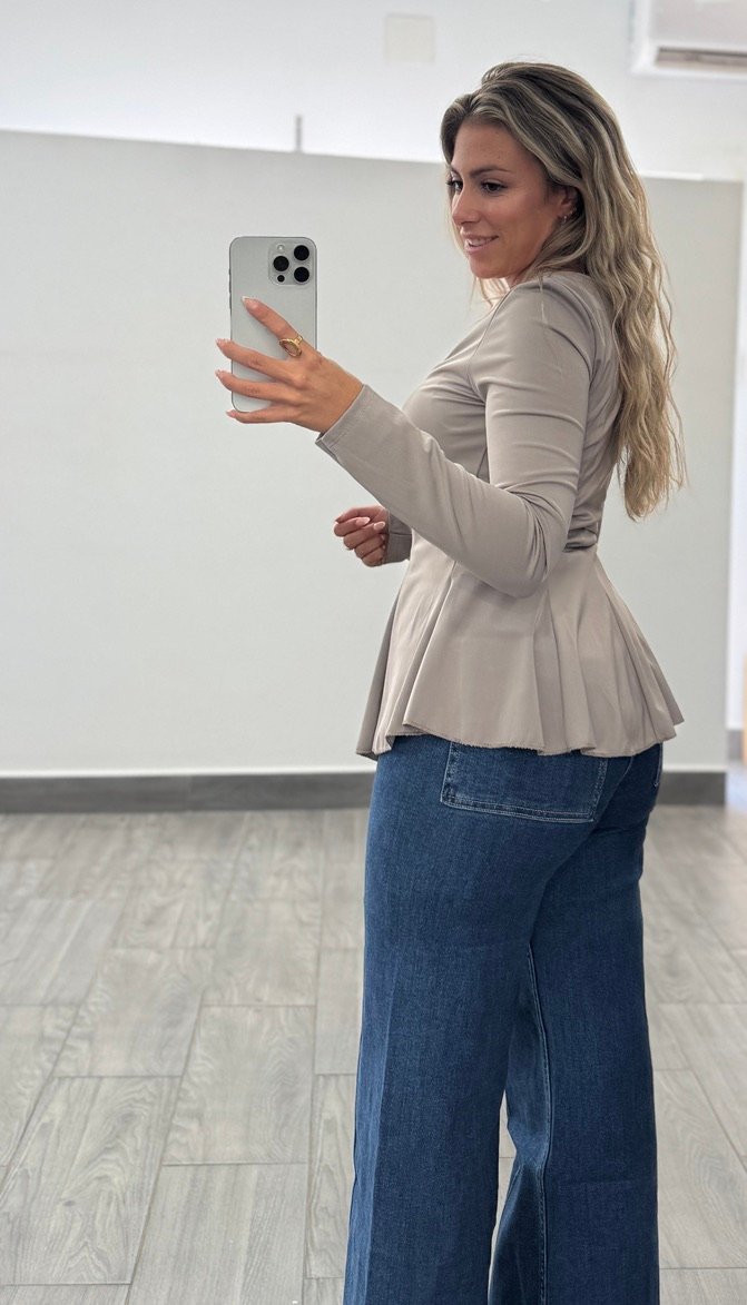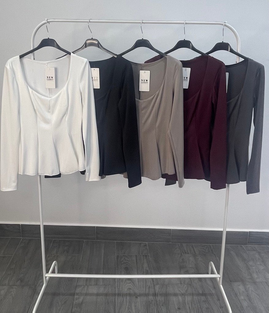 Top licra manga larga escote y volante bajo
