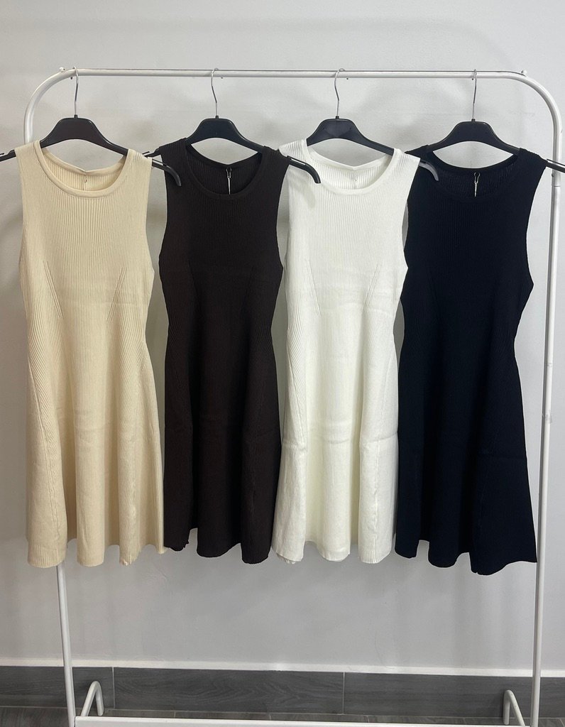 Vestido punto de hilo en tiranta y bajo falda vuelo.